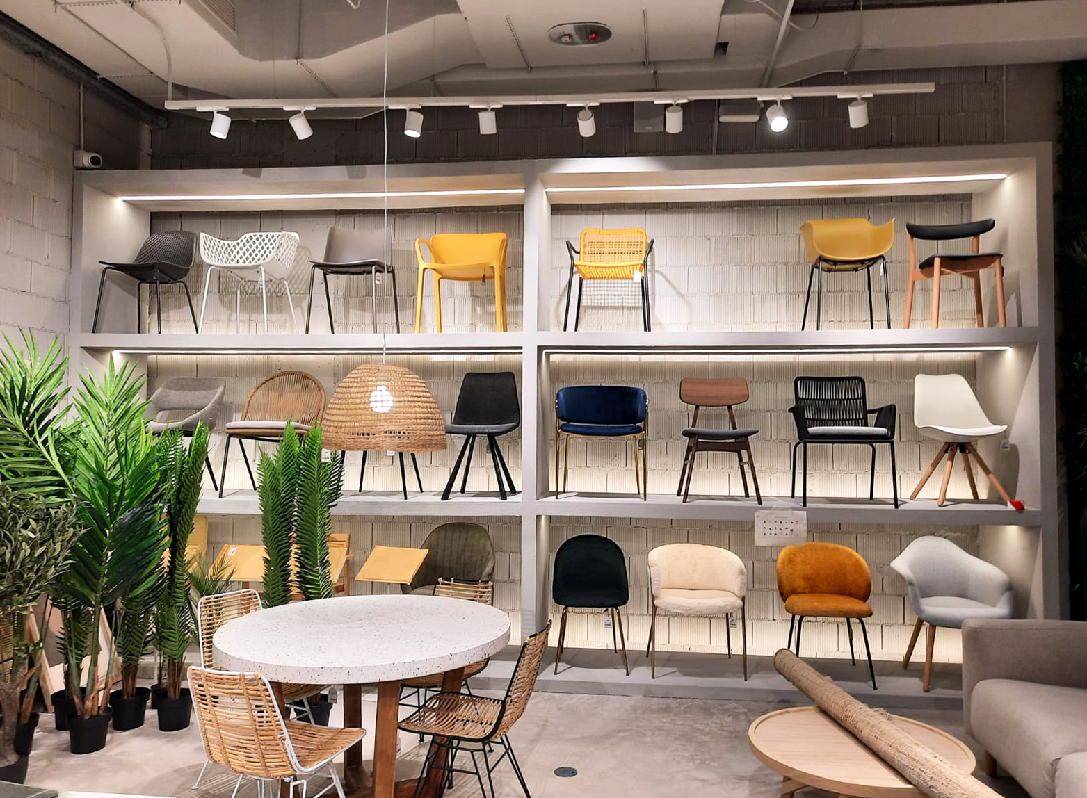 En su interior se han creado ambientes diferenciados que reflejan la amplitud de la oferta de Kave Home: desde el set principal en planta calle, con elementos de decoración experiencial y rincones instagrameables, hasta la planta inferior donde se desarrollan zonas de mobiliario de exterior, iluminación, dormitorios y propuestas infantiles.